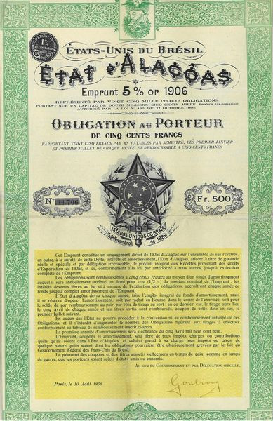 Etats-Unis du Brésil - Etat d'Alagôas - Emprunt 5 % or 1906