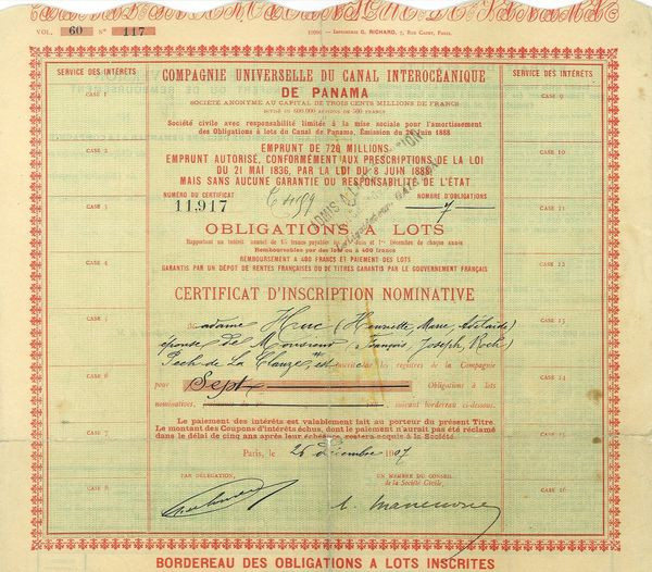 Cie Universelle du Canal Interocéanique de Panama (certif nomin rouge)