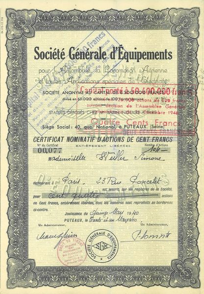 Sté Gale d'Equipements pour l'Automobile la Locomotion Aérienne et toutes Applications Spéciales à l'Electricité