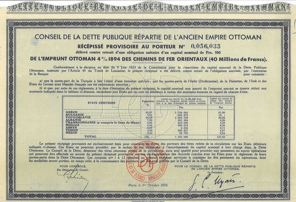Emprunt Ottoman 4 % 1894 des Chemins de Fers Orientaux