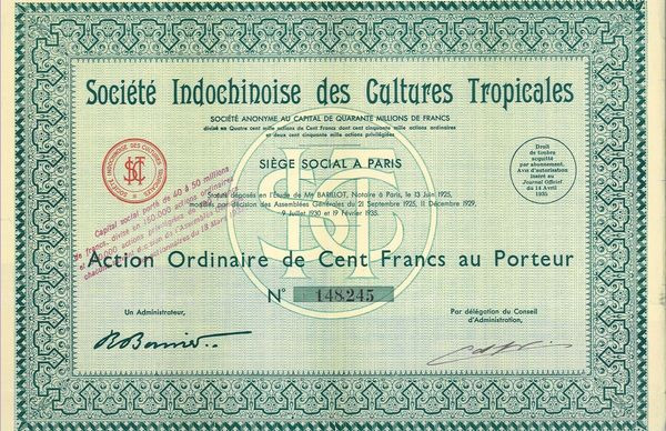 Sté Indochinoise des Cultures Tropicales (Act Ordin 100 F)