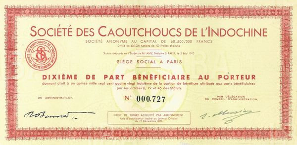 Sté des Caoutchoucs de l'Indochine (10ème de PB)