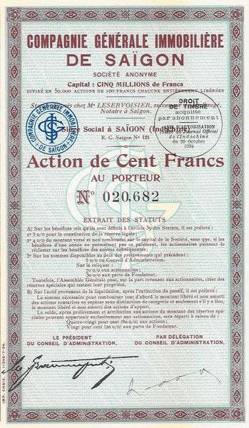 Cie Gale Immobilière de Saïgon (Act 100 F)