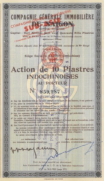 Cie Gale Immobilière de Saïgon (Act 10 Piastres)