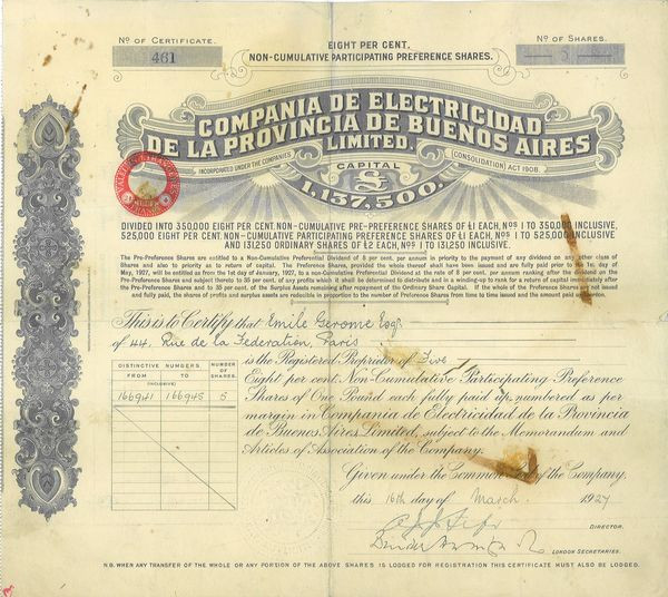 Cia de Electricidad de la Provincia de Buenos Aires Ltd (Pre-participative)