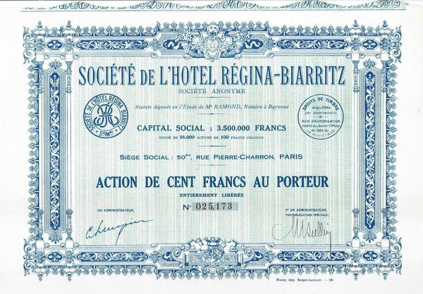 Sté de l'Hôtel Régina-Biarritz (Act 1928)