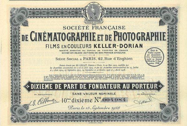 Sté Française de Cinématographie et de Photographie Films en Couleur Keller-Dorian (10 10ème de PF)