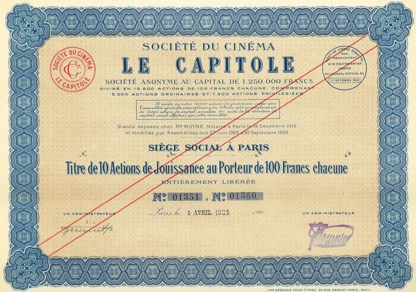 Sté du Cinéma Le Capitole (Titre 10 Act Jouissance)