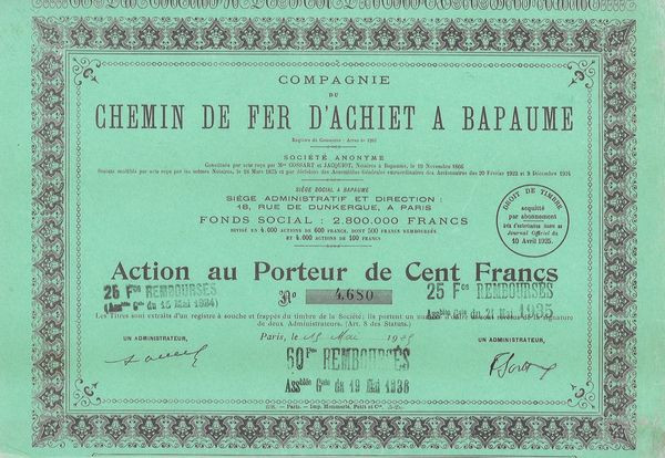 Cie du Chemin de Fer d'Achiet à Bapaume