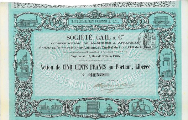 Ets Derosne et Cail - Sté Cail & Cie (Act)