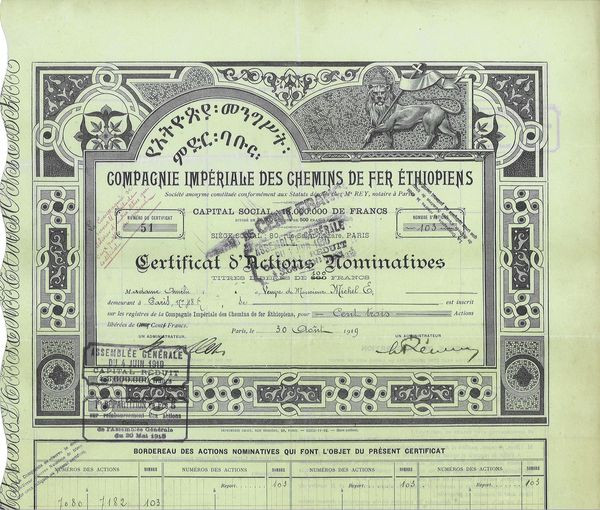 Cie Impériale des Chemins de Fer Ethiopiens (Certif Act Nomin)