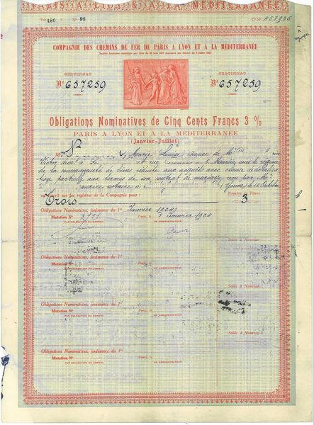 Chemins de Fer de Paris à Lyon et à la Méditerranée (Obl nomin)
