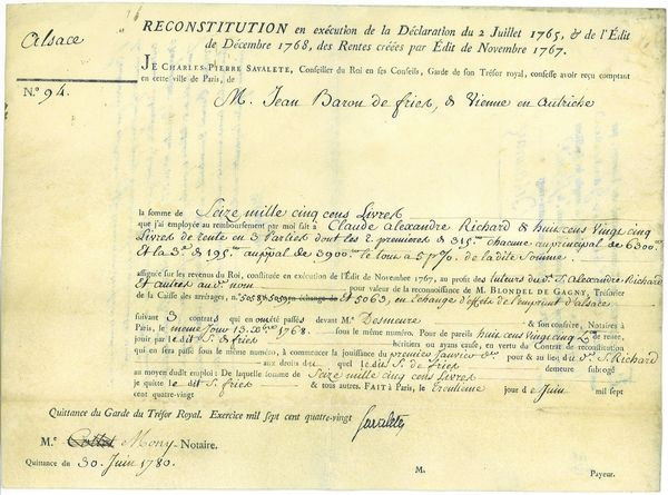 Rente sur l'Emprunt d'Alsace 1780