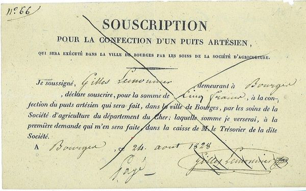 Souscription pour la Confection d'un Puits artésien