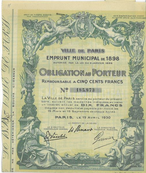 Ville de Paris Emprunt Municipal de 1898