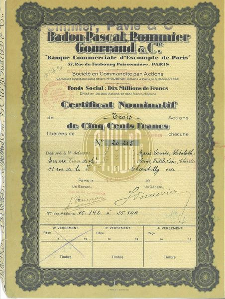 Badon-Pascal Pommier Gourraud & Cie - Banque Commerciale d'Escompte de Paris