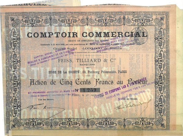 Comptoir Commercial Feiss Tilliard & Cie Banquiers