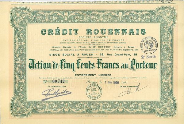 Crédit Rouennais - Banque Régionale (Act 500 F)