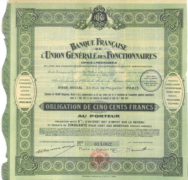 Banque Française de l'Union Générale des Fonctionnaires Civils & Militaires de l'Etat des Colonies des Départements des Communes