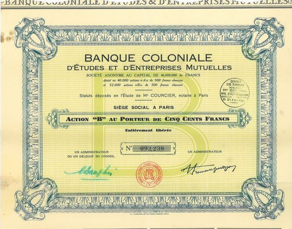 Banque Coloniale d'Etudes et d'Entreprises Mutuelles (Act B)