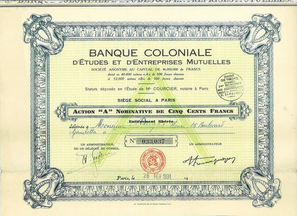 Banque Coloniale d'Etudes et d'Entreprises Mutuelles (Act A nomin)