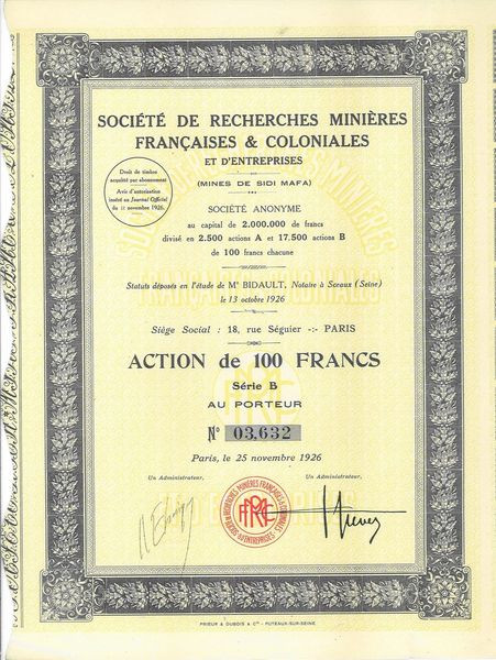 Société de Recherches Minières Françaises & Coloniales et d'Entreprises (Mines de Sidi Mafa)
