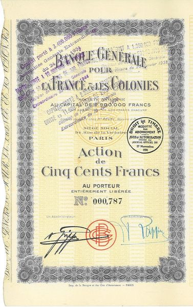 Banque Générale pour la France & les Colonies (Act 500 F)