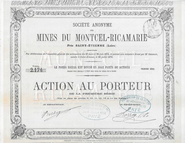 Société Anonyme des Mines du Montcel-Ricamarie Près Saint-Etienne (Loire)