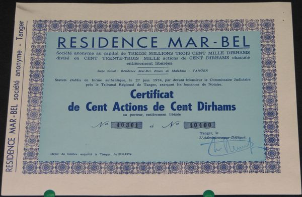 | Nominatif | Certif de 100 Act 100 Dirhams |