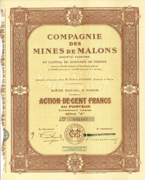 Compagnie des Mines de Malons (Act)