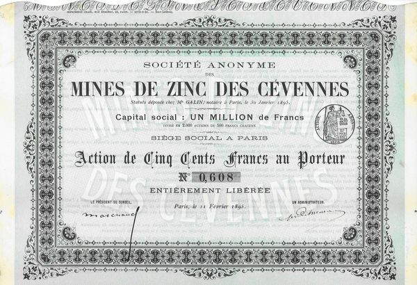 Société Anonyme des Mines de Zinc des Cévennes (Act)