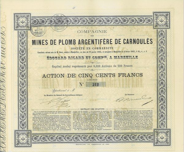 Compagnie des Mines de Plomb Argentifère de Carnoulès (Edouard Ricard et Cie à Marseille)