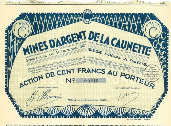 Mines d'Argent de la Caunette (Act 100 F)(1928)