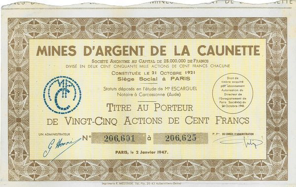 Mines d'Argent de la Caunette (25 Act 100 F)(1943)