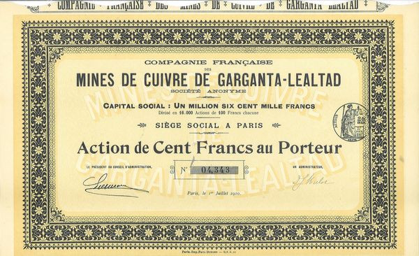 Cie Française des Mines de Cuivre de Garganta-Lealtad