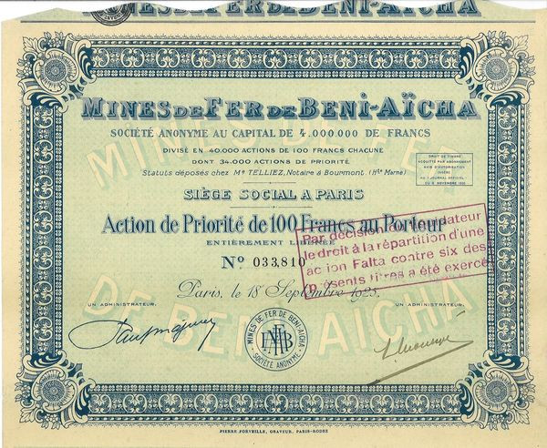 Mines de Fer de Beni-Aïcha (Act P 100 F) (1925)