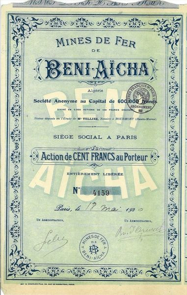 Mines de Fer de Beni-Aïcha (Act 100 F)