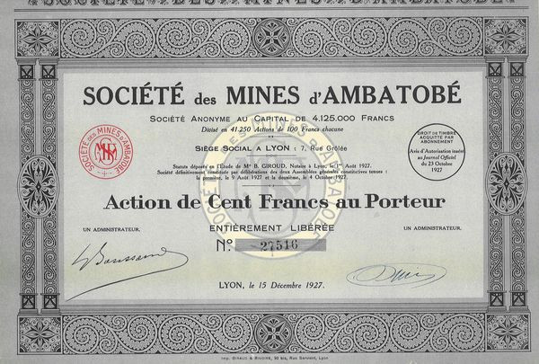 Fort d’un catalogue riche de 11006 actions et obligations de collection du monde entier, ScripoFrance met à votre disposition 9840 pièces authentiques déjà en stock et prêtes à rejoindre votre collection.