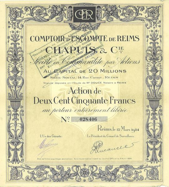 Comptoir d'Escompte de Reims - Chapuis & Cie (Act)