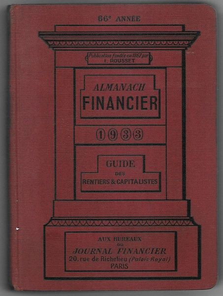 Almanach Financier 1933 Guide des Rentiers & Capitalistes