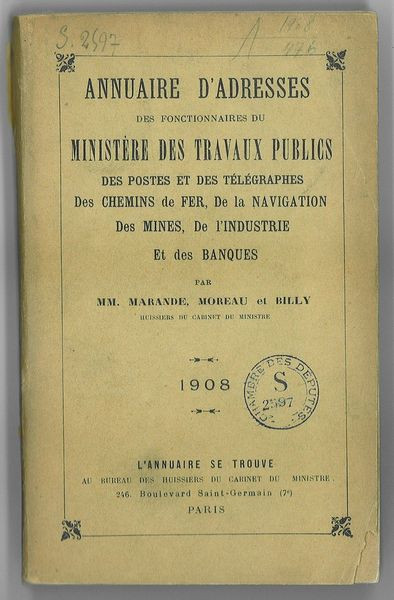 Annuaire d'Adresses des Fonctionnaires du Ministère des Travaux Publics des Postes et des Télégraphes . des Chemins de Fer . de
