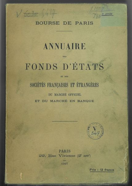 Annuaire des Fonds d'Etats et des Sociétés Françaises et Etrangères du Marché Officiel et du Marché en Banque - Banque Razsovich