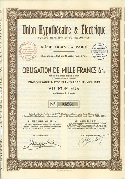 Union Hypothécaire & Electrique - Sté de Crédit et de redevances