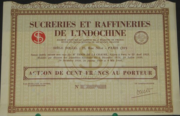 Sucreries et Raffineries de l'Indochine (Act 100 F) (blanquette)