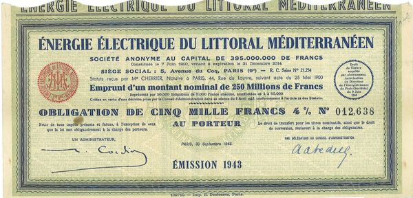 Energie Electrique du Littoral Méditerranéen (Obl 5000 F 4 %)