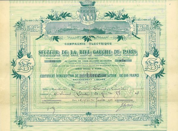 Cie Electrique du Secteur de la Rive Gauche de Paris (Certif)