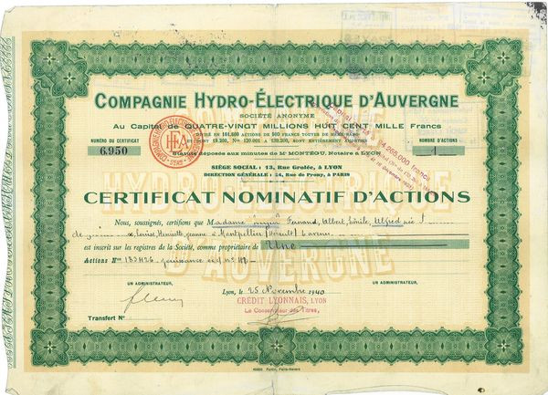 Cie Hydro-Electrique d'Auvergne (Certif)