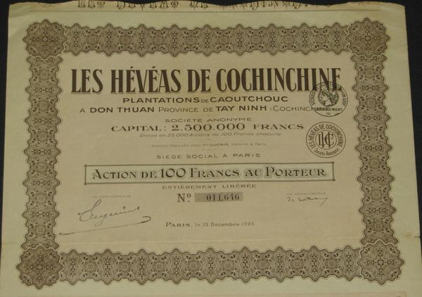 Les Hévéas de Cochinchine - Plantations de Caoutchouc (Act 100 F - capital 2.5 M)