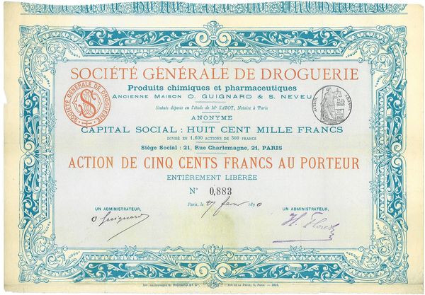 Sté Gale de Droguerie - Produits Chimiques et Pharmaceutiques - Anc Maison O. Guignard & S. Neveu