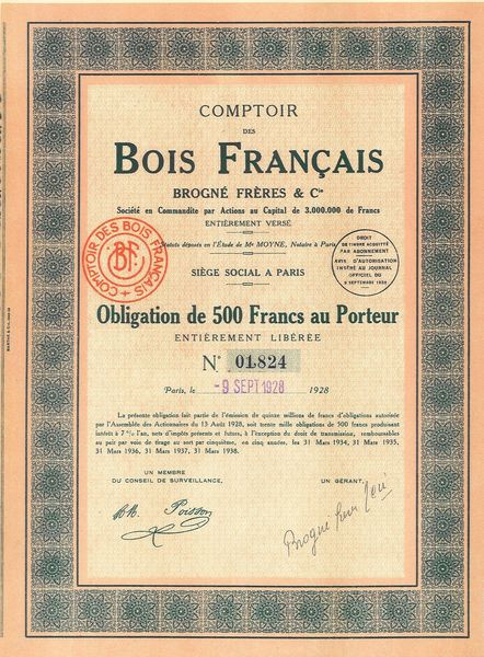 Comptoir des Bois Français Brogné Frères & Cie (Obl)
